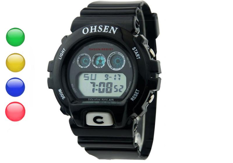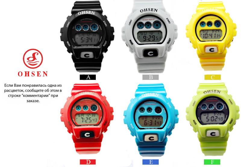 Дополнительные функции: дата, день недели, месяц, будильник, секундомер, подсветка (7 цветов), часовой бипер.